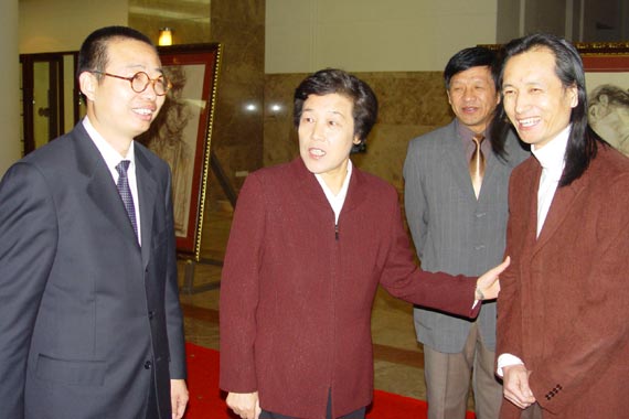 院長進行了交談并做了重要指示。她指出,山東工藝美術學院擁有一批國內外知名的教授和藝術家,要充分利用這個資源,注重對設計家、畫家的實踐或創(chuàng)作活動進行理論研究和總結,使理論研究和藝術實踐更緊密地結合起來。同時,要發(fā)揮知名教授和學者的作用,培養(yǎng)自己的年輕教師。她對蔡玉水的藝術創(chuàng)作給予高度評價。