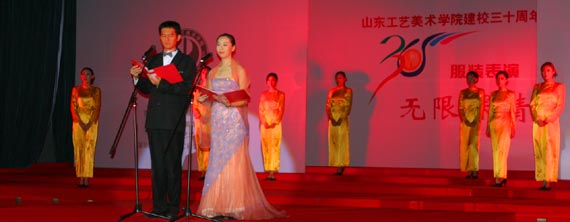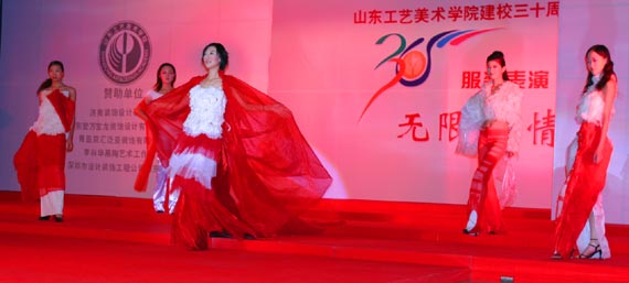 10月26日,山東工藝美院30周年校慶系列活動之一,以《無限深情》為主題的大型服裝表演在山東國際會展中心會堂拉開帷幕。王軍民副省長觀看了這次演出。王軍民副省長對我院堅持“辦出特色、注重建設”的原則,不搞慶典儀式,通過舉辦系列學術(shù)活動,高揚人文旗幟,倡導創(chuàng)新精神,與海內(nèi)外校友一起切磋技藝、研討理論的做法給予了充分肯定,并向我院30周年校慶表示了祝賀和祝福。