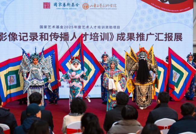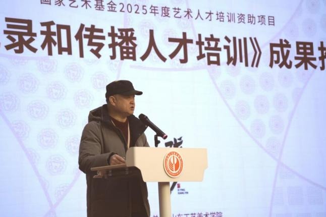 1月12日,“戲影鄉(xiāng)音:國(guó)家藝術(shù)基金2025年度藝術(shù)人才培訓(xùn)資助項(xiàng)目《戲曲影像記錄和傳播人才培訓(xùn)》成果推廣匯報(bào)展”在山東工藝美術(shù)學(xué)院美術(shù)館開展。山東工藝美術(shù)學(xué)院院長(zhǎng)董占軍出席活動(dòng)并致辭,副院長(zhǎng)孔亮主持展覽開幕式,黨委委員、宣傳部部長(zhǎng)孫磊出席活動(dòng)。