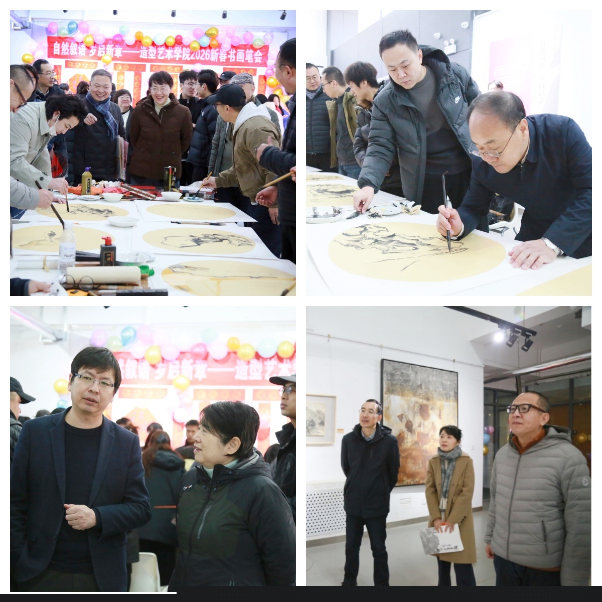 歲序更替,福韻盈懷。1月13日上午,造型藝術(shù)學(xué)院“自然敘語歲啟新章”2026新春教師作品展暨師生迎春送福筆會(huì)在圖書館藝術(shù)空間啟幕。學(xué)校黨委書記王曉娟,院長(zhǎng)董占軍,副院長(zhǎng)張艷霞,副院長(zhǎng)孔亮,黨委委員、統(tǒng)戰(zhàn)部部長(zhǎng)安峰,黨委委員、組織部部長(zhǎng)弭友海蒞臨現(xiàn)場(chǎng)指導(dǎo)。