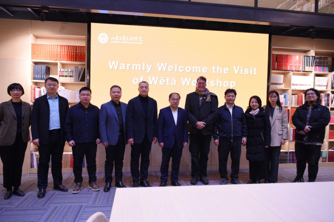2月3日,新西蘭維塔工作室聯(lián)合創(chuàng)始人理查德·泰勒(Richard Taylor)爵士、創(chuàng)意總監(jiān)高峽(Sam Gao)、顧問李璐(Louie Li)一行來訪我校,省委外辦美大處處長(zhǎng)、一級(jí)調(diào)研員李研峰陪同訪問。山東工藝美術(shù)學(xué)院院長(zhǎng)董占軍,副院長(zhǎng)孫大剛,黨委委員、組織部部長(zhǎng)、黨委(學(xué)院)辦公室主任弭友海接待來賓。