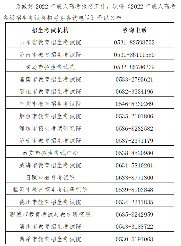 2022年成人高考各級招生考試機構(gòu)考務(wù)咨詢電話