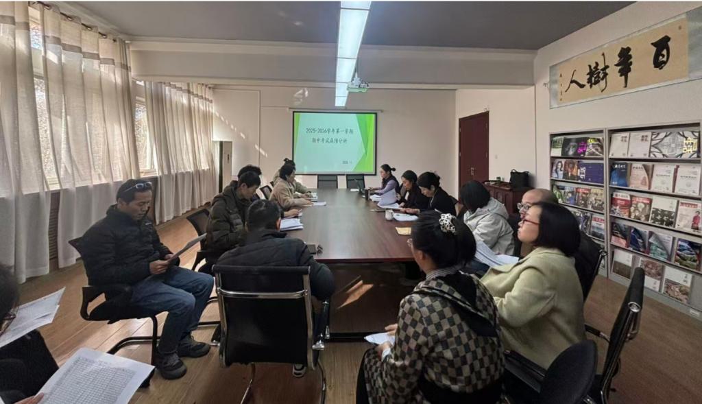 為全面總結(jié)期中考試情況、優(yōu)化教學(xué)策略、推動教學(xué)質(zhì)量持續(xù)提升,11月25日下午,附中召開期中考試成績分析會。會議由文化課教研室主任李夢雪主持,附中校長耿玉出席會議,全體教職工參會。