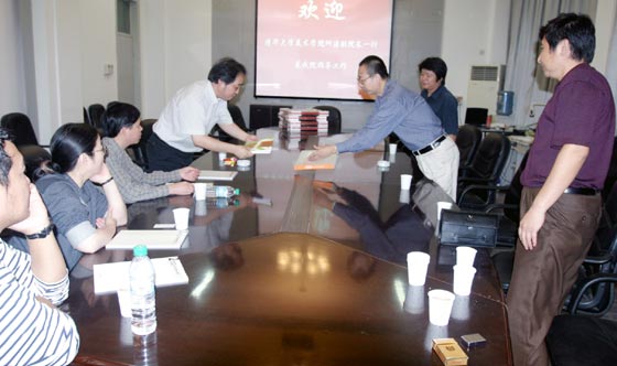 院長(zhǎng)向來(lái)賓介紹了學(xué)院概況以及發(fā)展戰(zhàn)略。何院長(zhǎng)介紹了清華大學(xué)美術(shù)學(xué)院教學(xué)科研工作所取得的成績(jī)和進(jìn)展,并表示以后將進(jìn)一步加強(qiáng)雙方的實(shí)質(zhì)性交流和合作,共同提高科研和教育水平。何潔副院長(zhǎng)是國(guó)內(nèi)知名的平面設(shè)計(jì)方面的專家,這次到訪特意提出與我院省級(jí)重點(diǎn)專業(yè)進(jìn)行交流展覽等學(xué)術(shù)活動(dòng)。院辦王立果主任、教務(wù)處任仲全副處長(zhǎng)、科研處胡希佳處長(zhǎng)、裝潢系苗登宇主任參加了座談會(huì)。何潔副院長(zhǎng)還專程拜訪了張一民教授,隨后何院長(zhǎng)一行參觀了我院博物館和孫長(zhǎng)林藝術(shù)館。