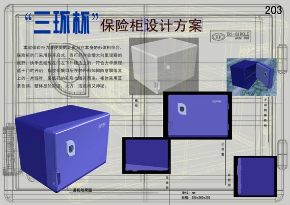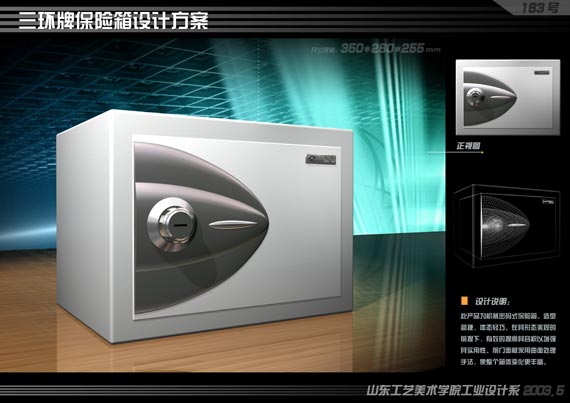 由山東煙臺“三環(huán)”鎖業(yè)集團、山東工藝美術(shù)學(xué)院主辦,工業(yè)設(shè)計系承辦的“三環(huán)杯”保險箱、保險柜設(shè)計大賽于2003年11月圓滿落下帷幕。此次設(shè)計大賽于2003年4月就緊鑼密鼓地進行了組織籌備工作,從下達通知、張貼海報、組織全院師生參賽,到作品評審以及獲獎作品展出等一系列活動,工業(yè)設(shè)計系組委會都進行了緊張的組織安排,整個過程有條不紊,非常順利。