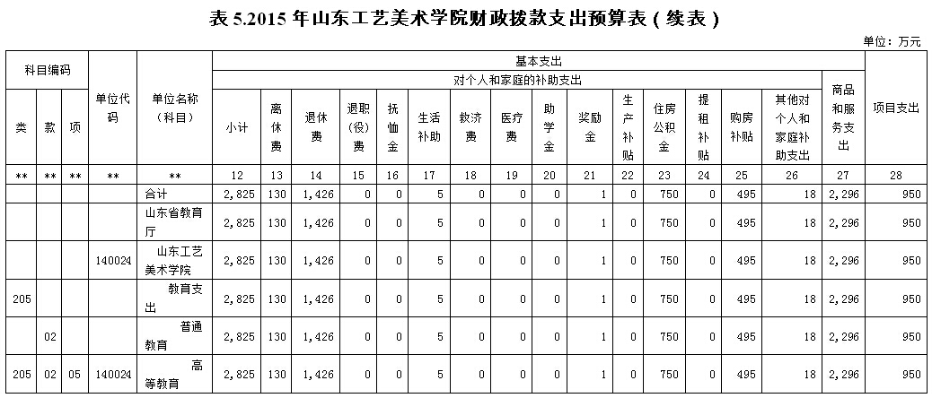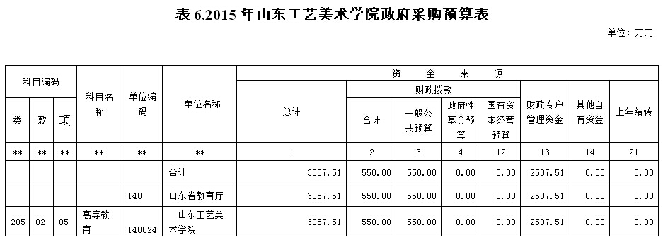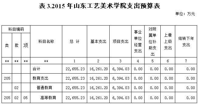 一、預(yù)算編制的基本原則和方法 2015年預(yù)算編制遵循的原則:一是加強財務(wù)管理,強化預(yù)算約束力,在保障學(xué)校日常運轉(zhuǎn)的基礎(chǔ)上,從緊安排各項支出;二是編實、編準(zhǔn)、編細各項收支預(yù)算,量入為出,量力而行,不搞赤字預(yù)算;三是保證重點項目,突出當(dāng)年學(xué)校重點建設(shè)項目的中心地位,保證對教學(xué)、科研的投入;四是開源節(jié)流并重,加快預(yù)算執(zhí)行進度,適當(dāng)籌集資金,減少欠款,節(jié)約各項開支,提高資金使用效益。預(yù)算采用零基預(yù)算的方法編制。 二、收支預(yù)算總體情況 2015年收入預(yù)算為22404萬元,其中財政撥款11989萬元,財政專戶管理資金10150萬元,其他收入265萬元。上年結(jié)轉(zhuǎn)251.23萬元。 2015年支出預(yù)算為22655.23萬元,均為教育支出。 三、財政撥款支出預(yù)算情況 2015年財政撥款支出預(yù)算為11989萬元,均為教育支出普通教育支出,主要用于工資福利支出、對個人和家庭的補助支出、商品和服務(wù)支出和項目支出。 四、學(xué)校一般公共預(yù)算財政撥款“三公”經(jīng)費支出預(yù)算為零。