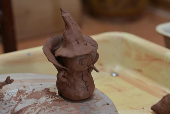 團隊成員學習拉坯過程