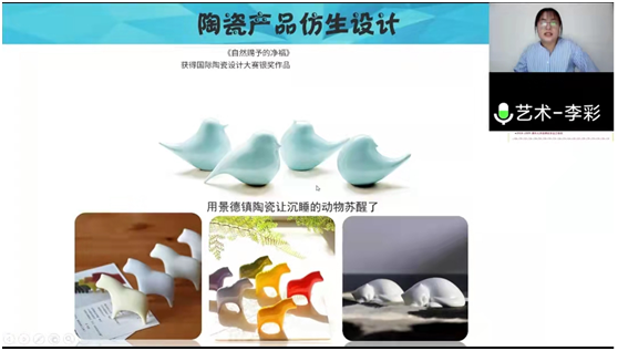 仿生設(shè)計(jì)是仿生學(xué)與設(shè)計(jì)學(xué)的結(jié)合,并涉及自然與社會(huì)科學(xué)很多領(lǐng)域。在藝術(shù)設(shè)計(jì)領(lǐng)域通過(guò)仿生物形態(tài)進(jìn)行設(shè)計(jì)活動(dòng)。從遠(yuǎn)古陶器裝飾紋樣中的圖案就可以發(fā)現(xiàn),古人將生活中的動(dòng)植物繪制在器表作為裝飾,充分體現(xiàn)了自然界對(duì)設(shè)計(jì)的影響。我們生活中的創(chuàng)意設(shè)計(jì)有眾多仿生設(shè)計(jì)。李彩老師介紹了陶瓷產(chǎn)品仿生設(shè)計(jì)的案例,引發(fā)大家更多的設(shè)計(jì)思考。