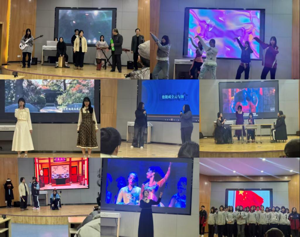 活動(dòng)在熱烈的氛圍中拉開(kāi)帷幕,各類節(jié)目輪番登場(chǎng)、精彩紛呈。樂(lè)器合奏率先點(diǎn)燃全場(chǎng),中西樂(lè)器交相輝映,樂(lè)手們指尖流轉(zhuǎn)、弦音悠揚(yáng),盡顯學(xué)子的藝術(shù)功底;活力滿滿的高一團(tuán)舞舞者們踏著明快的節(jié)奏,將舞蹈的獨(dú)特韻律與青春活力完美融合,展現(xiàn)出多元文化交融的獨(dú)特魅力;獨(dú)唱節(jié)目中,同學(xué)們用清澈嘹亮的歌聲傳遞心聲,每一首歌曲都飽含著青春的熱忱;小品表演則以貼近校園生活的題材、詼諧幽默的臺(tái)詞、惟妙惟肖的演繹,將現(xiàn)場(chǎng)氣氛推向一個(gè)又一個(gè)高潮,在歡聲笑語(yǔ)中傳遞生活的溫暖與思考;經(jīng)典朗誦節(jié)目中,同學(xué)們字字鏗鏘、情感真摯,用聲音詮釋文字的力量,抒發(fā)對(duì)家國(guó)、對(duì)生活、對(duì)青春的熱愛(ài)與感悟;大合唱環(huán)節(jié),師生同臺(tái)或?qū)W子齊唱,嘹亮的歌聲響徹校園,整齊的和聲凝聚起奮進(jìn)的力量,成為藝術(shù)節(jié)中最動(dòng)人的旋律。整臺(tái)演出形式多樣、內(nèi)容豐富,團(tuán)舞、樂(lè)器合奏、歌唱、小品、朗誦、合唱等節(jié)目各展風(fēng)采,同學(xué)們?cè)谖枧_(tái)上盡情展示才華、釋放活力,每一個(gè)精彩的瞬間都被定格,每一份真摯的情感都在傳遞。臺(tái)下掌聲、歡呼聲此起彼伏,師生們沉浸在藝術(shù)的氛圍中,共同感受校園文化的獨(dú)特魅力。