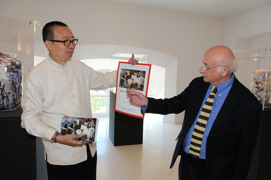 潘魯生與策展人溫琴佐·桑弗在展覽現(xiàn)場(chǎng)。