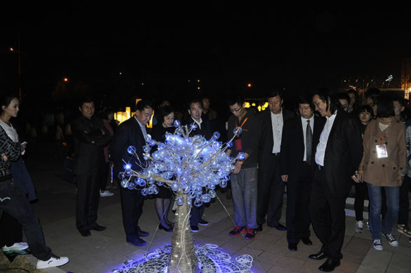 10月18日晚,由山東工藝美術(shù)學(xué)院團委主辦,校學(xué)生會承辦的“照亮工美四十年”創(chuàng)意燈展活動在山東工藝美術(shù)學(xué)院長清校區(qū)校前廣場噴泉兩側(cè)拉開帷幕,本次燈展歷時三天。 黨委書記于茂陽,院長潘魯生,黨委副書記楊新力,黨委副書記、紀委書記裴新鋒,副院長李新、刁在祥、張云龍、苗登宇,院長助理王立果參觀了燈展,并對燈展中學(xué)生們的創(chuàng)意水平和動手能力給予了高度評價。 工美學(xué)子期盼已久的建校四十周年終于到來了,夜幕剛剛降臨,創(chuàng)意燈展活動在星光璀璨的校前廣場上拉開了序幕,伴隨著形狀各異,光鮮艷麗創(chuàng)意燈的照射,噴泉飛向天空的剎那猶如五彩的水晶簾懸掛在半空,給人一種賞心悅目的感覺。此次創(chuàng)意燈展活動以“照亮工美四十年”為主題,經(jīng)過同學(xué)們巧妙地構(gòu)思以及獨特的創(chuàng)意最終將各學(xué)院特色的燈展展現(xiàn)在了廣大師生面前。每個學(xué)院的作品經(jīng)過獨特的設(shè)計,巧妙地?zé)艄馀c位置安排,將最好的創(chuàng)意思維展現(xiàn)出來。 創(chuàng)意燈展活動是團委喜迎建校40周年,開拓同學(xué)創(chuàng)新能力,學(xué)習(xí)團隊協(xié)作力的美好實踐。創(chuàng)意燈展活動要求利用學(xué)生的學(xué)習(xí)經(jīng)驗設(shè)計出可以體現(xiàn)自身的專業(yè)技能符合環(huán)保節(jié)約的時代潮流,本次活動為廣泛性的群體教育,不僅可以加強團總支的號召力,提高基層團組織的凝聚力、創(chuàng)造力,同時有利于學(xué)生加強專業(yè)學(xué)習(xí),激發(fā)創(chuàng)意思維,將專業(yè)實踐與學(xué)生活動相結(jié)合,踐行學(xué)校實踐教學(xué)的理念。在建校40周年開展之際舉辦創(chuàng)意燈展活動表達了青年學(xué)生作為工美學(xué)子的愛校之情。 來自各二級學(xué)院的創(chuàng)意主題燈進行了展演。同學(xué)們以豐富的想象、精湛的工藝利用各種可回收利用材料制作做出獨具匠心的燈。繽紛的燈光,獨具的創(chuàng)意,一覽無遺的展現(xiàn)在觀者面前。視覺傳達設(shè)計學(xué)院的“剪筑作品”獨具一格,立體感較強,以獨特的視角展現(xiàn)工美魅力;建筑與景觀設(shè)計學(xué)院作品“筑夢四十年”展現(xiàn)了工美四十周年的歷史風(fēng)采;人文藝術(shù)學(xué)院的主題燈“揚帆起航”環(huán)保利用吸引了廣大師生駐足;工業(yè)設(shè)計學(xué)院的“魯班鎖”、服裝學(xué)院的“北斗七星燈”等作品也很引人矚目;現(xiàn)代手工藝術(shù)學(xué)院作品“圓夢”更是將經(jīng)典動畫人物再現(xiàn),構(gòu)思獨特;數(shù)字藝術(shù)與傳媒學(xué)院的“巢”視角獨特,引人深思。每個學(xué)院的作品經(jīng)過獨特的設(shè)計,巧妙地?zé)艄馀c位置安排,將最好的創(chuàng)意思維展現(xiàn)出來,充分體現(xiàn)了“照亮工美四十年”的主題。 通過舉辦本次燈展,為本次建校40周年系列活動增添了光彩,點亮了工美校園,溫暖了學(xué)子的心靈,增強了同學(xué)們的合作意識,激發(fā)了他們的想象力和創(chuàng)造力。