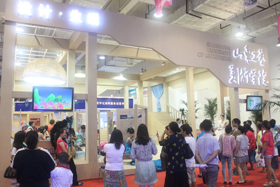 8月30日,在濟(jì)南國際會展中心拉開帷幕的第四屆山東文化創(chuàng)意產(chǎn)業(yè)博覽交易會上,山東工藝美術(shù)學(xué)院創(chuàng)意展區(qū)以“設(shè)計?生活”為展覽主題,展示內(nèi)容貼近生活,獲得廣泛贊譽。 山東工藝美術(shù)學(xué)院創(chuàng)意展區(qū)在展覽形式上,以“家”為概念原型,整個展場搭建了貼近“生活味道”的展示空間,在展示上接近人們?nèi)粘>幼∩羁臻g(居室);“家”中的樓梯是高低起伏的展演舞臺,貫穿了大部分展場,“家”四周的墻壁為開放通透設(shè)計,利于現(xiàn)場演示與內(nèi)外圍觀欣賞、互動。展板打破常規(guī)展示形式,創(chuàng)意的采用“入門”的形式,引導(dǎo)著觀眾打開創(chuàng)意之門,步入創(chuàng)意殿堂。在實物展示上,結(jié)合“生活空間”放置了學(xué)校師生以及大師設(shè)計的家居用品、飾品,精確傳達(dá)出創(chuàng)意設(shè)計與生活的關(guān)系。在展覽的材料上使用了較為單純和廉價的中密度板,使空間更加純粹和貼近生活。 在展示內(nèi)容上,以創(chuàng)意時尚展演、cosplay展示、服裝設(shè)計、創(chuàng)意化妝彩繪等動態(tài)展演內(nèi)容以及近兩年來學(xué)校重大社會服務(wù)成果為主要展示內(nèi)容,全程展示創(chuàng)意設(shè)計與文化產(chǎn)業(yè)、出版業(yè)、影視制作、數(shù)字內(nèi)容、時尚產(chǎn)業(yè)、工藝美術(shù)等業(yè)態(tài)交融發(fā)展的產(chǎn)業(yè)趨勢,以及產(chǎn)學(xué)研服務(wù)社會生活的重要項目,體現(xiàn)學(xué)校創(chuàng)新“政產(chǎn)學(xué)研”和“商產(chǎn)學(xué)研”合作辦學(xué)的模式,以及以產(chǎn)業(yè)拉動教學(xué)、以項目帶動教學(xué)的辦學(xué)定位。 山東工藝美術(shù)學(xué)院是我國獨立建制的31所普通高等藝術(shù)院校之一,也是全國唯一一所獨立建制的工藝美術(shù)學(xué)院,是學(xué)士學(xué)位、碩士學(xué)位、MFA授予單位,山東省設(shè)計藝術(shù)學(xué)“泰山學(xué)者”崗位。學(xué)校以設(shè)計藝術(shù)學(xué)科為主體,承傳我國現(xiàn)代以來優(yōu)秀的工藝美術(shù)辦學(xué)系統(tǒng),汲取當(dāng)代藝術(shù)理念和相關(guān)科技要素,努力培養(yǎng)具有“科學(xué)精神、人文素養(yǎng)、藝術(shù)創(chuàng)新和技術(shù)能力”的創(chuàng)新型應(yīng)用藝術(shù)設(shè)計人才。