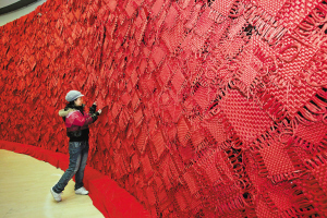 迎面一面長40多米、寬4米的精美中國結(jié)“墻”,紅紅火火拉開了2011年中國美術(shù)館開年大展的帷幕。