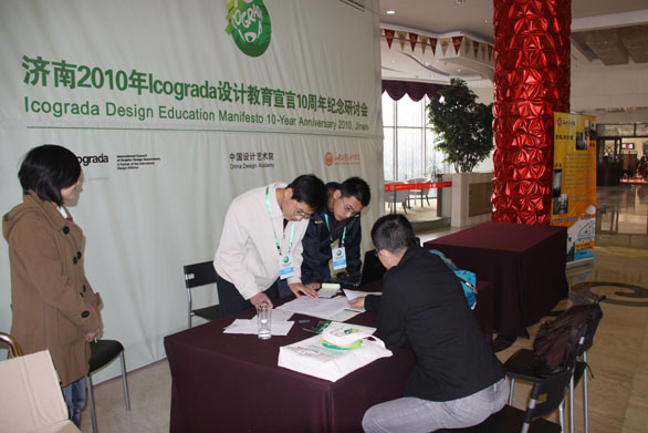 濟(jì)南2010年Icograda設(shè)計(jì)教育宣言10周年紀(jì)念研討會將于11月2日在我校舉行,11月1日,與會專家陸續(xù)抵達(dá)我校。我校在專家下榻酒店設(shè)立了專家接待處。在工作人員的幫助下,與會專家順利報(bào)到。 本次研討會由國際平面設(shè)計(jì)協(xié)會聯(lián)合會、中國設(shè)計(jì)藝術(shù)院和我校聯(lián)合主辦,研討會的主題是“設(shè)計(jì)教育的未來”,包括一系列展覽和工作坊,來自美國、韓國、日本、比利時(shí)、意大利和中國的設(shè)計(jì)師和藝術(shù)家們將從設(shè)計(jì)教育和設(shè)計(jì)產(chǎn)業(yè)兩方面對設(shè)計(jì)教育的未來進(jìn)行探討,希望找到一條通過有效使用設(shè)計(jì)創(chuàng)造一個(gè)更加美好世界的道路。