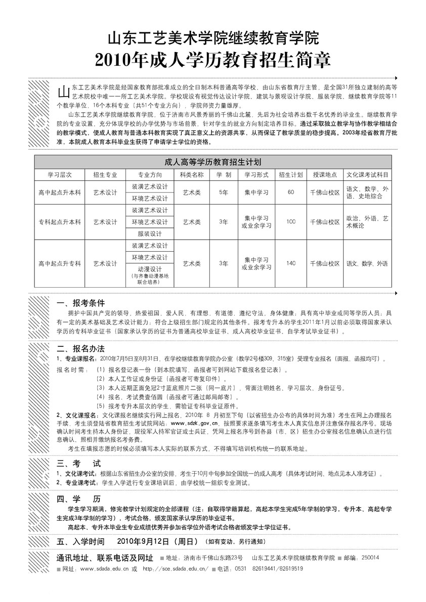 山東工藝美術(shù)學(xué)院2010年成人學(xué)歷教育招生(10-08-12)