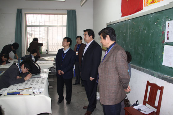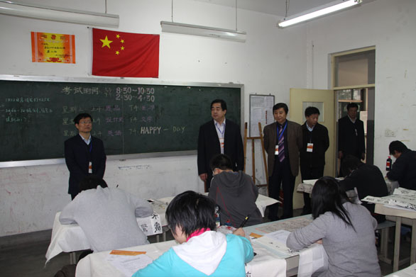 2月24日上午,我校2010年招生專業(yè)考試?yán)_帷幕,部分考生在應(yīng)用設(shè)計學(xué)院分院考點參加考試。上午10:00,副院長張云龍,院長助理、辦公室主任王立果來到應(yīng)用設(shè)計學(xué)院分院考點巡視,檢查指導(dǎo)考試工作。省電影學(xué)校黨委書記、校長安立元陪同巡視。 副院長張云龍,院長助理、辦公室主任王立果仔細(xì)巡視各個考場,查閱考生試卷,詢問考試有關(guān)事宜,指導(dǎo)考試工作。校領(lǐng)導(dǎo)充分肯定了井然有序的考場秩序,要求監(jiān)考人員要本著對考生負(fù)責(zé)的態(tài)度,嚴(yán)肅考場紀(jì)律,嚴(yán)格考試程序,確保考試的公平、公正。 應(yīng)用設(shè)計學(xué)院分院考點領(lǐng)導(dǎo)對我校的專業(yè)招生考試工作高度重視,成立專門機構(gòu),承擔(dān)了考試具體工作。學(xué)校領(lǐng)導(dǎo)對省電影學(xué)校在我校招生專業(yè)考試工作方面給予的支持和付出的努力表示感謝。 考務(wù)組組長康健,考務(wù)組副組長滕丕強等陪同巡視。