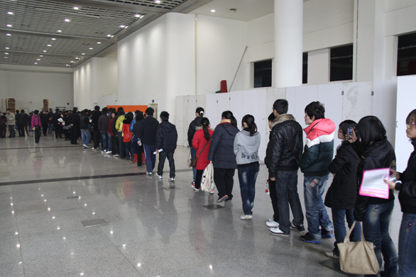 2月22日上午,我校2010年專業(yè)考試現(xiàn)場報(bào)名正式開始。來自各地的考生及家長們早早來到濟(jì)南舜耕國際會(huì)展中心廣場的專業(yè)考試報(bào)名現(xiàn)場排起了隊(duì)伍。在現(xiàn)場工作人員的細(xì)心引導(dǎo)下,上午7:30,考生有序地進(jìn)入會(huì)展大廳進(jìn)行現(xiàn)場報(bào)名。 在我校工作人員的安排和引導(dǎo)下,現(xiàn)場秩序井然,考生首先領(lǐng)取《山東工藝美術(shù)學(xué)院招生簡章》和《報(bào)考專業(yè)登記表》,填完表后在收款處交報(bào)名費(fèi),然后去報(bào)名處核對證件并領(lǐng)取準(zhǔn)考證,在存根收取處上交存根,整個(gè)過程簡潔便利,全程僅用幾分鐘。 今年學(xué)校繼續(xù)堅(jiān)持“安全第一,考生為本”的原則,學(xué)校領(lǐng)導(dǎo)高度重視、周密部署,各職能組精心準(zhǔn)備、認(rèn)真籌劃,工作人員熱情耐心、服務(wù)周到。報(bào)名現(xiàn)場用警戒帶隔離,各報(bào)名環(huán)節(jié)都設(shè)有醒目的提示標(biāo)牌,現(xiàn)場循環(huán)廣播報(bào)名注意事項(xiàng),并有學(xué)生志愿者熱情為考生服務(wù),極大方便了考生報(bào)名。 考生及家長對我校報(bào)名工作的組織給予了高度評價(jià),一致認(rèn)為我校的報(bào)名工作組織得力,效率高效,他們很滿意。來自濱州的孫同學(xué)一早就與同伴趕到現(xiàn)場等待報(bào)名,而前來為考生報(bào)名的一名考生家長早上6:00就已趕到現(xiàn)場,他們都認(rèn)為我校師資力量雄厚、專業(yè)配置合理,在省內(nèi)藝術(shù)高校中具有相當(dāng)高的知名度。