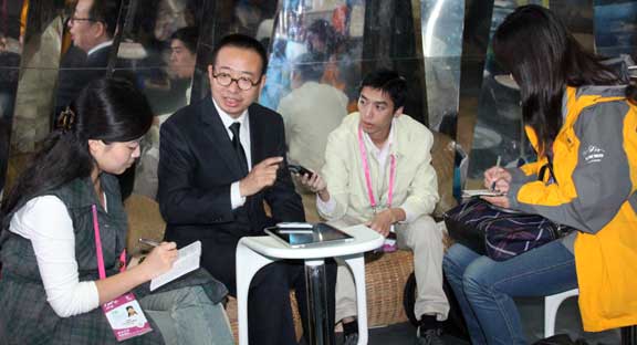 世博會(huì)山東館,接受了山東衛(wèi)視、大眾日?qǐng)?bào)、山東人民廣播電臺(tái)和齊魯晚報(bào)記者的集體采訪。