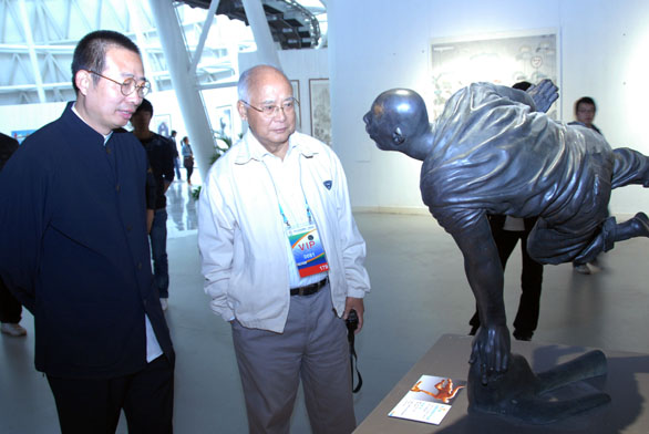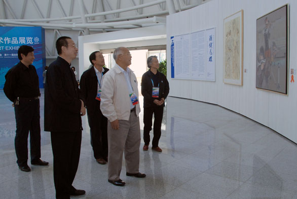 10月17日下午,應(yīng)山東省人民政府和第十一屆全運(yùn)會(huì)組委會(huì)的邀請(qǐng),國(guó)際奧委會(huì)執(zhí)行委員會(huì)委員、中國(guó)奧委會(huì)名譽(yù)主席,前國(guó)際奧委會(huì)副主席、中國(guó)奧委會(huì)主席、國(guó)家體委副主任何振梁先生一行5人來(lái)我省訪(fǎng)問(wèn),并到我校參觀(guān)第七屆中國(guó)體育美術(shù)展覽。院長(zhǎng)潘魯生,院長(zhǎng)助理、辦公室主任王立果在長(zhǎng)清校區(qū)貴賓接待室接待到訪(fǎng)來(lái)賓。 潘魯生院長(zhǎng)向何振梁先生一行來(lái)我校訪(fǎng)問(wèn)表示歡迎,并向來(lái)賓介紹了在我校舉辦的第七屆中國(guó)體育美展相關(guān)情況。潘魯生院長(zhǎng)指出,中國(guó)體育美術(shù)作品展每四年舉辦一屆,是中國(guó)全運(yùn)會(huì)期間舉辦的重要文化活動(dòng)項(xiàng)目。第七屆中國(guó)體育美術(shù)作品展是國(guó)家級(jí)美術(shù)大展,體現(xiàn)了我國(guó)“和諧中國(guó) 全民全運(yùn)”的宗旨,生動(dòng)的詮釋了體育運(yùn)動(dòng)“更快、更高、更強(qiáng)”的奧林匹克精神追求,同時(shí)也展現(xiàn)了美術(shù)工作者的創(chuàng)作活力和參與熱情,是一次完美的體育與教育、文化的融合。 潘魯生院長(zhǎng)在談及對(duì)體育的感受時(shí)指出,體育的魅力引導(dǎo)了一代又一代人,影響深遠(yuǎn)。我國(guó)歷史文化悠久,對(duì)于體育的理解,我們要始終注重和諧的重要性,“更快、更高、更強(qiáng)”的表述使得的奧林匹克精神更加賦有生命力。作為兩次申奧的見(jiàn)證人,何振梁先生引領(lǐng)我們認(rèn)識(shí)體育、了解體育、熱愛(ài)體育、感受體育,非常值得我們尊重。 潘魯生院長(zhǎng)還向來(lái)賓介紹了我校的建設(shè)發(fā)展情況和辦學(xué)特色。他指出,體育產(chǎn)業(yè)與文化產(chǎn)業(yè)在很大程度上可以相互融合,學(xué)校多年來(lái)在教學(xué)實(shí)踐中重視倡導(dǎo)設(shè)計(jì)服務(wù)社會(huì),服務(wù)文化創(chuàng)意產(chǎn)業(yè)。學(xué)校重視藝術(shù)教育與體育教育的結(jié)合,積極推廣“和諧中國(guó) 全民全運(yùn)”的理念,鼓勵(lì)師生進(jìn)行藝術(shù)與體育方面的創(chuàng)作。我校設(shè)計(jì)團(tuán)隊(duì)創(chuàng)作出諸如第十一屆全運(yùn)會(huì)會(huì)徽、海報(bào)、獎(jiǎng)牌、圣火壇等一系列優(yōu)秀設(shè)計(jì)作品。同時(shí),學(xué)校體育活動(dòng)種類(lèi)豐富,學(xué)生參與熱情高漲,精神面貌朝氣蓬勃。 何振梁先生對(duì)我校的熱情招待表示感謝,并指出,體育既有內(nèi)在美,又具外在美,體育通過(guò)與文化、教育相結(jié)合來(lái)傳播體育精神,來(lái)體現(xiàn)體育所追求的真善美和人類(lèi)之間友好、尊重的高尚品質(zhì)。競(jìng)技不是體育的唯一目的,體育更是在傳播一種文化,傳播著永不放棄、不斷前進(jìn)與和平友愛(ài)的理念。對(duì)于奧林匹克精神的學(xué)習(xí)和傳播必將有利于我們和諧社會(huì)的構(gòu)建。何振梁先生認(rèn)為,我們需要去思考,如何通過(guò)藝術(shù)來(lái)表現(xiàn)體育的作品。體育類(lèi)藝術(shù)作品不僅要具備外在的形似,更要具備內(nèi)在美的表現(xiàn)。 在談及我國(guó)申奧的艱苦歷程時(shí),何振梁先生感慨萬(wàn)千。他認(rèn)為,正是改革開(kāi)放后我國(guó)政治、經(jīng)濟(jì)、文化的繁榮景象,提高了我國(guó)在國(guó)際上的地位和影響,才使得我們能夠申奧成功。國(guó)家的發(fā)展促進(jìn)了體育的繁榮,體育的興盛又提高了國(guó)家的綜合實(shí)力。何振梁先生強(qiáng)調(diào),只有熱愛(ài)體育的民族,必是朝氣蓬勃的民族。 何振梁先生對(duì)我校的各項(xiàng)工作給予高度評(píng)價(jià)。他指出,山東工藝美術(shù)學(xué)院通過(guò)藝術(shù)的形式表現(xiàn)了體育的真善美,在進(jìn)一步弘揚(yáng)體育、文化與教育為一體的奧林匹克文化理念方面起到了積極的推動(dòng)作用。很高興能到山東工藝美術(shù)學(xué)院參觀(guān)第七屆中國(guó)體育美展,希望我校能夠積極參與體育有關(guān)的各項(xiàng)活動(dòng),繼續(xù)為國(guó)家的體育事業(yè)發(fā)展做出新貢獻(xiàn)。 會(huì)見(jiàn)結(jié)束后,院長(zhǎng)潘魯生向何振梁先生贈(zèng)送了第七屆中國(guó)體育美展作品選并合影留念。 會(huì)見(jiàn)前,何振梁一行參觀(guān)了在我校展出的第七屆中國(guó)體育美展,并參觀(guān)民藝博物館。參觀(guān)期間,院長(zhǎng)潘魯生向何振梁先生詳細(xì)講解了展出的部分作品,何振梁先生對(duì)展出作品表現(xiàn)出濃厚的興趣,不時(shí)駐足觀(guān)察畫(huà)作細(xì)節(jié),并對(duì)部分展品提出了獨(dú)特見(jiàn)解。 黨委宣傳部部長(zhǎng)張振羽、美術(shù)館館長(zhǎng)曾毅陪同接待參觀(guān)。