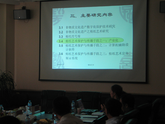 座談會期間彭冬梅副館長介紹了山東工藝美術(shù)學(xué)院中國民藝研究所與浙江大學(xué)數(shù)字藝術(shù)研究中心合作開展的山東省科技廳軟科學(xué)計劃項目“非物質(zhì)文化遺產(chǎn)數(shù)字化保護技術(shù)的研究與開發(fā)”,其中正在研究與開發(fā)中的一個子項目“剪紙計算機輔助設(shè)計理論與方法研究”引起了美國學(xué)者的濃厚興趣,他們表示中國學(xué)者在民間藝術(shù)數(shù)字化研究領(lǐng)域所取得的成就與視野在世界上也處于比較前沿的地位,這種深入拓展為傳統(tǒng)藝術(shù)、民間藝術(shù)融入現(xiàn)代藝術(shù)、現(xiàn)代生活奠定了充分的基礎(chǔ),值得他們借鑒與學(xué)習(xí)。