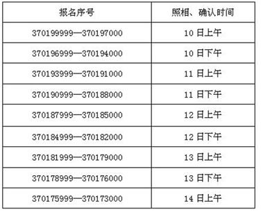 (2)照相并領(lǐng)取信息確認表:憑身份證(或?qū)W生證)、交費收據(jù)和網(wǎng)上報名號(3757*****)后五位到“照相處”照相,領(lǐng)取打印的信息確認表。