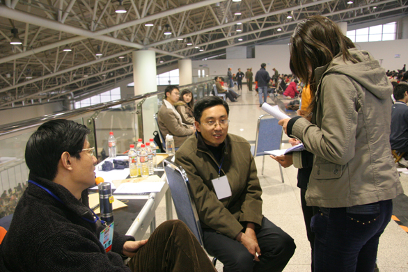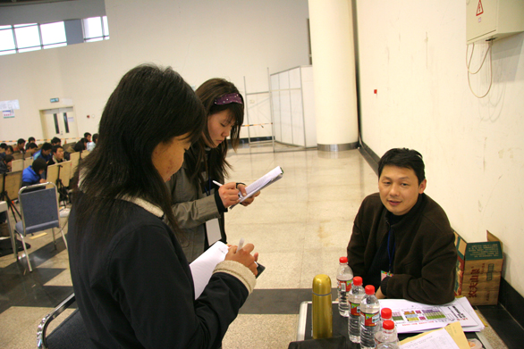 3月1日上午,我校2007年專業(yè)考試在濟(jì)南舜耕國(guó)際會(huì)展中心和我校應(yīng)用設(shè)計(jì)學(xué)院分院緊張有序地進(jìn)行,考場(chǎng)到處可以看到監(jiān)考官忙碌的身影,在休息的間隙,記者對(duì)幾位監(jiān)考官進(jìn)行了采訪。