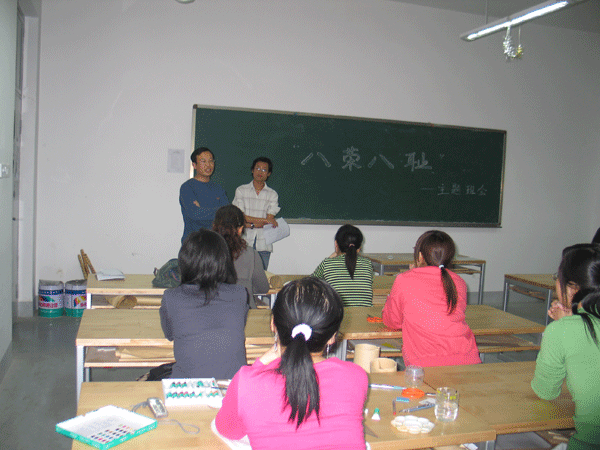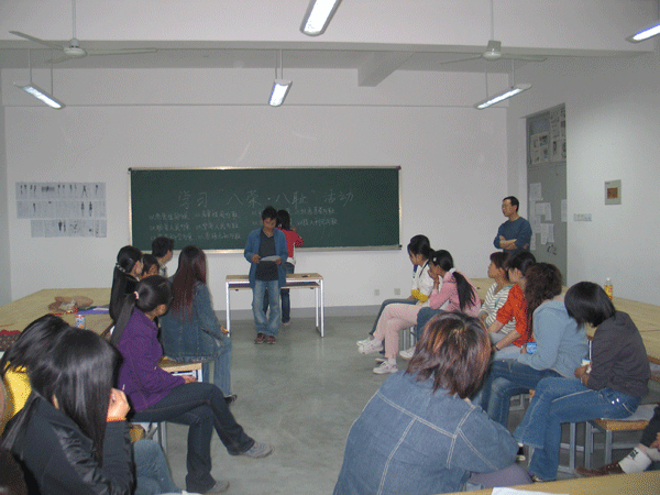 為響應(yīng)團(tuán)委號(hào)召,正確樹(shù)立大學(xué)生社會(huì)主義榮辱觀,4月26日晚,服裝學(xué)院組織2004級(jí)、2005級(jí)全體同學(xué)以團(tuán)支部為單位在各班教室召開(kāi)學(xué)習(xí)“八榮八恥”的團(tuán)支部會(huì)議。