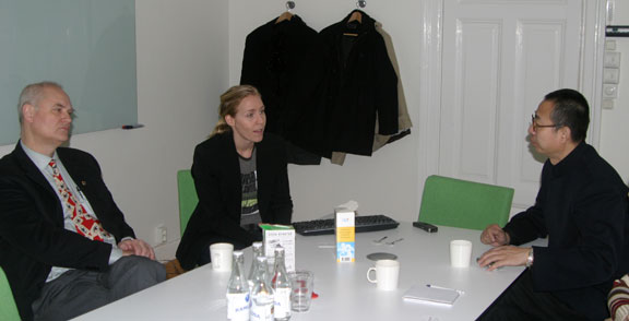 和外事辦副主任康健在瑞典皇家工學(xué)院工業(yè)設(shè)計(jì)系康拉德 .鹿特羅普先生和瑞典皇家工學(xué)院國(guó)際管理和教育中心何穎芳女士的陪同下訪問(wèn)了瑞典一家生態(tài)設(shè)計(jì)公司,埃爾格諾米設(shè)計(jì)公司。該公司工業(yè)設(shè)計(jì)師安娜.卡萊爾女士熱情接待