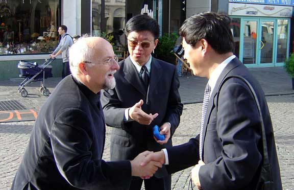 2004年10月24日于茂陽書記拜會了我院客座教授格林貝格先生,并進(jìn)行了座談。格林貝格先生帶領(lǐng)考察組參觀了他在市政廳的辦公室,馬克思曾生活和學(xué)習(xí)的場所。于書記與格林貝格先生進(jìn)行廣泛友好的會談,他正在積極推動我院與德國院校之間的合作,并鼓勵以后在研修生培養(yǎng)方面加強(qiáng)合作,以便利用德國政府有關(guān)的基金支持。他還提前安排了比勒菲爾德大學(xué)與考察組成員會面及參觀考察事宜。格林貝格先生聯(lián)系了一位美國洛杉磯著名設(shè)計師將在近期到我院訪問講學(xué)工作。午飯后,格林貝格先生帶領(lǐng)考察組成員參觀了他所主持的基金會辦公室。考察組成員學(xué)院外事辦康健副主任、教務(wù)處