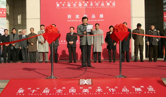 李鐵映、何魯麗、郝建秀、孫家正、李從軍、陳曉光、覃志剛、李牧、靳尚誼、劉大為、華君武、王琦等為金獎獲得者頒獎。隨后,李鐵映、何魯麗、郝建秀、孫家正、李從軍、陳曉光、覃志剛、李牧、靳尚誼、華君武為第十屆全國美展獲獎作品展開幕式剪彩。