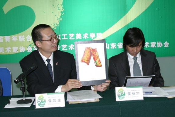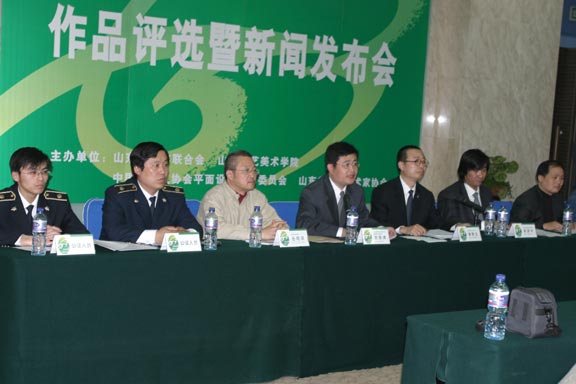 ,評審委員會(huì)委員、青島大學(xué)美術(shù)學(xué)院平面設(shè)計(jì)教研室主任岳曉泉,評審委員會(huì)委員兼秘書長、山東工藝美術(shù)學(xué)院裝潢藝術(shù)設(shè)計(jì)系副主任苗登宇,評審委員會(huì)委員兼秘書長、山東工藝美術(shù)學(xué)院應(yīng)用設(shè)計(jì)學(xué)院副院長石增泉,評審委員會(huì)副秘書長仇宏洲出席了新聞發(fā)布會(huì)。