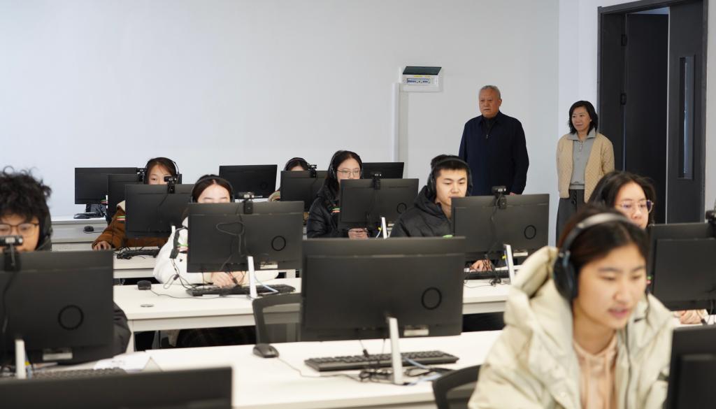 校領(lǐng)導(dǎo)苗新民,語(yǔ)委辦負(fù)責(zé)人顧群業(yè)、李蓉,青島測(cè)試站負(fù)責(zé)人張長(zhǎng)征,相繼巡視考試現(xiàn)場(chǎng)。指出,推廣普通話是高校落實(shí)“立德樹(shù)人”根本任務(wù)的重要舉措,通過(guò)以測(cè)促訓(xùn)、以訓(xùn)促學(xué)的方式,可以有效激發(fā)學(xué)生學(xué)習(xí)普通話的熱情,營(yíng)造“說(shuō)普通話,寫規(guī)范字”的濃厚校園文化氛圍。