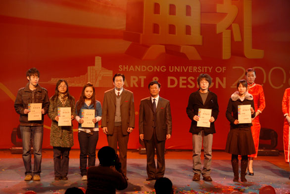12月25日晚,由團(tuán)委主辦的山東工藝美術(shù)學(xué)院校訓(xùn)創(chuàng)意設(shè)計(jì)競(jìng)賽頒獎(jiǎng)活動(dòng)于我校長(zhǎng)清校區(qū)學(xué)術(shù)報(bào)告廳舉行。教育部本科教學(xué)工作水平評(píng)估專家組組長(zhǎng)、清華大學(xué)美術(shù)學(xué)院楊永善教授,專家組副組長(zhǎng)、南京藝術(shù)學(xué)院副院長(zhǎng)劉偉冬教授,評(píng)估專家組成員、中央美術(shù)學(xué)院設(shè)計(jì)學(xué)院副院長(zhǎng)許平教授,四川大學(xué)藝術(shù)學(xué)院院長(zhǎng)黃宗賢教授,云南大學(xué)藝術(shù)與設(shè)計(jì)學(xué)院院長(zhǎng)李森教授,專家組秘書(shū)張勇、朱洪春,省教育廳副廳長(zhǎng)宋承祥,高教處處長(zhǎng)宋伯寧、副處長(zhǎng)張鵬程,我校黨委書(shū)記于茂陽(yáng),院長(zhǎng)