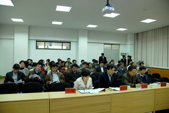 潘魯生,黨委副書記、紀(jì)委書記李世平,副院長王秀存、李新、刁在祥、張云龍出席會議。我校全體處級干部參加了會議。副院長刁在祥主持會議。