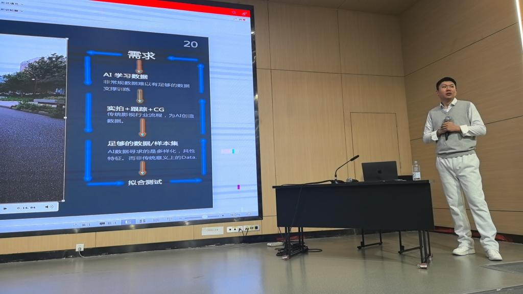 12月5日上午,山東工藝美術(shù)學(xué)院舉辦專題講座《人工智能與數(shù)字產(chǎn)業(yè)》。講座由Xmax.AI首席視效專家王夢浩擔(dān)任主講,特邀Xmax.AI人工智能研究團(tuán)隊史佳欣、杜海龍共同出席。講座由教務(wù)處處長顧群業(yè)教授擔(dān)任學(xué)術(shù)主持,來自游戲藝術(shù)設(shè)計、視覺傳達(dá)設(shè)計等專業(yè)的百余名師生共同參與本次活動。