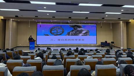 胡朝都副教授以《從哥白尼、康德到馬克思——以“發(fā)展”的概念與主體性的關(guān)系為線索》為題,圍繞“發(fā)展”的概念與主體性之間的關(guān)系,將深?yuàn)W的專業(yè)理論進(jìn)行了通俗易懂地講授。講座從人們熟悉的日常經(jīng)驗(yàn)出發(fā),通過對(duì)比古今自然環(huán)境與人文社會(huì)的發(fā)展情況,揭示理性推論超越感性經(jīng)驗(yàn)的價(jià)值所在。胡副教授在講座中指出,哥白尼革命實(shí)現(xiàn)了從太陽(yáng)圍繞地球到地球圍繞太陽(yáng)的認(rèn)知范式根本轉(zhuǎn)變,強(qiáng)調(diào)真正的哲學(xué)革命同樣需要這樣一種“哥白尼式”的立場(chǎng)轉(zhuǎn)化,即確立人作為實(shí)踐主體的中心地位。在此基礎(chǔ)上,講座深刻闡釋了馬克思主義的“發(fā)展”概念,這種發(fā)展觀絕非建立在經(jīng)驗(yàn)基礎(chǔ)上的自然過程,而是以人的實(shí)踐活動(dòng)為基礎(chǔ),以主觀能動(dòng)性的發(fā)揮為動(dòng)力,不斷認(rèn)識(shí)和解釋世界、改造世界的辯證運(yùn)動(dòng)。