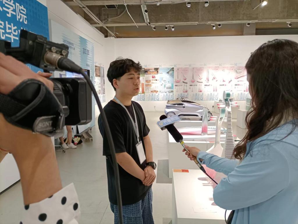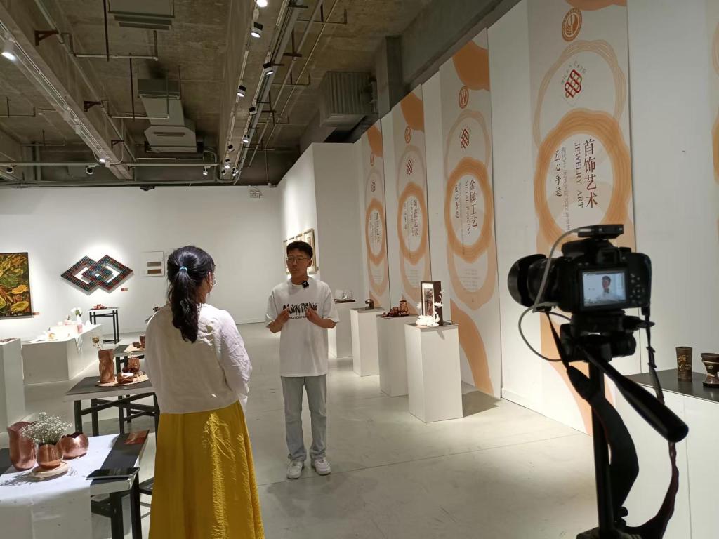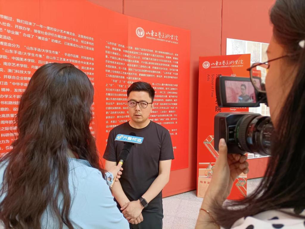 5月24日,山東電視臺(tái)齊魯頻道、生活頻道等媒體記者對(duì)“山東手造 青春力量”山東工藝美術(shù)學(xué)院2022年設(shè)計(jì)藝術(shù)博覽會(huì)進(jìn)行專(zhuān)題采訪報(bào)道。