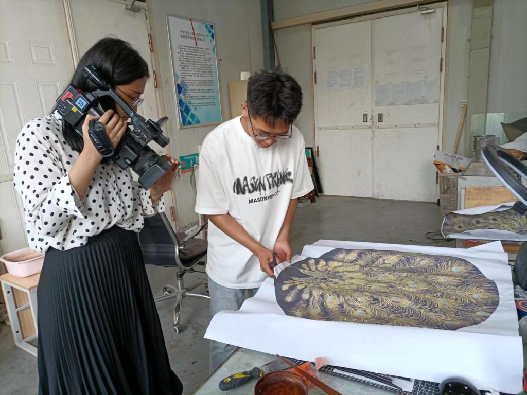 采訪過(guò)程中,很多具有獨(dú)特創(chuàng)意和山東文化特色的產(chǎn)品受到了媒體的點(diǎn)贊和關(guān)注。在抖音平臺(tái)獲得三千萬(wàn)播放量、一百多萬(wàn)點(diǎn)贊量的漆藝作品《孔雀屏深扇影開(kāi)》;在微博引起熱搜的公共藝術(shù)畢業(yè)設(shè)計(jì)作品《表與里》;立足菏澤當(dāng)?shù)禺a(chǎn)業(yè),突出“牡丹”品牌,讓傳統(tǒng)樂(lè)器二胡、笙、阮、古箏穿上白色與牡丹粉的“外衣”、植入藍(lán)牙音響等電子功能兼具中國(guó)風(fēng)與時(shí)尚感的《牡丹樂(lè)和》;年輕服裝設(shè)計(jì)師的《丹心筑夢(mèng)》,在一針一線中華彩霓裳的創(chuàng)新展示以及中國(guó)西北部具有特殊色彩的大漠中傳統(tǒng)武俠電影龍門(mén)客棧》的場(chǎng)景設(shè)計(jì)等等受到了媒體的廣泛報(bào)道。
